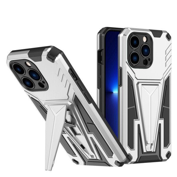 Military Grade Armor Protection Shockproof Hard Kickstand Case for Apple iPhone 13 Pro Max (Silver)